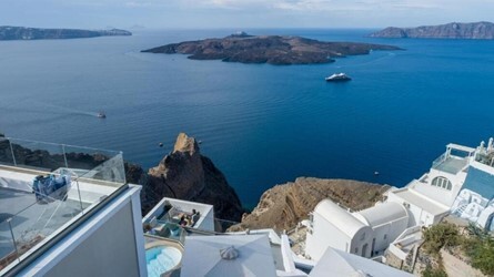 Отель расположен в центре города Фира (столица острова Санторини). Рядом с отелем находится множество ресторанов, баров, кафе, магазинов. Международный аэропорт острова находится в 5 км от отеля, порт — в 8 км, а ближайший пляж — в 5 км.