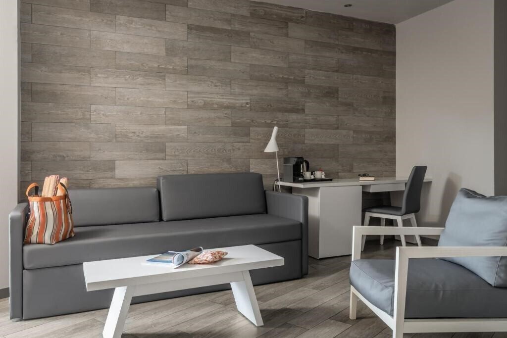 Junior Suite Luxe Sea View – пентхаус с прямым видом на море и просторной террасой (40 кв. м, макс. размещение – 3 взрослых + 1 ребенок).