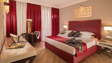 Многие номера с роскошными ванными комнатами с большими окнами и некоторые из них с джакузи имеют просторные террасы, с которой открывается вид на виллу Боргезе и уникальная панорама города.