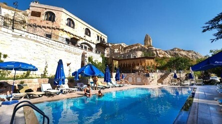 Отель Traveller's Cave с множеством террас и видом на Каппадокию расположен на вершине горы Гёреме. Номера отеля Traveller's Cave вырезаны из камня Каппадокии вулканической породы, зарегистрированного ЮНЕСКО с 1985 года.