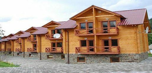 Комплекс состоит из 6 деревянных двухэтажных коттеджей
