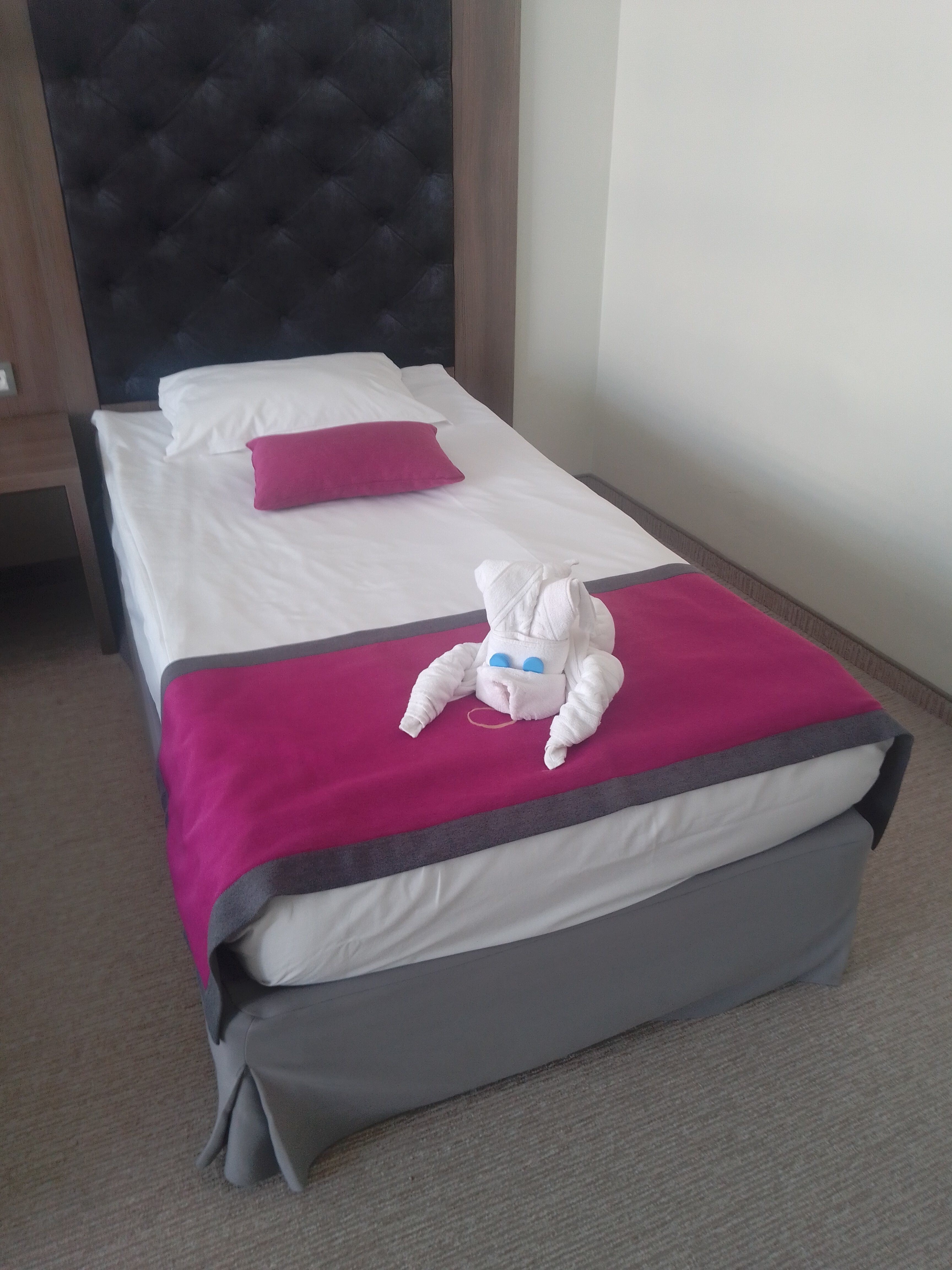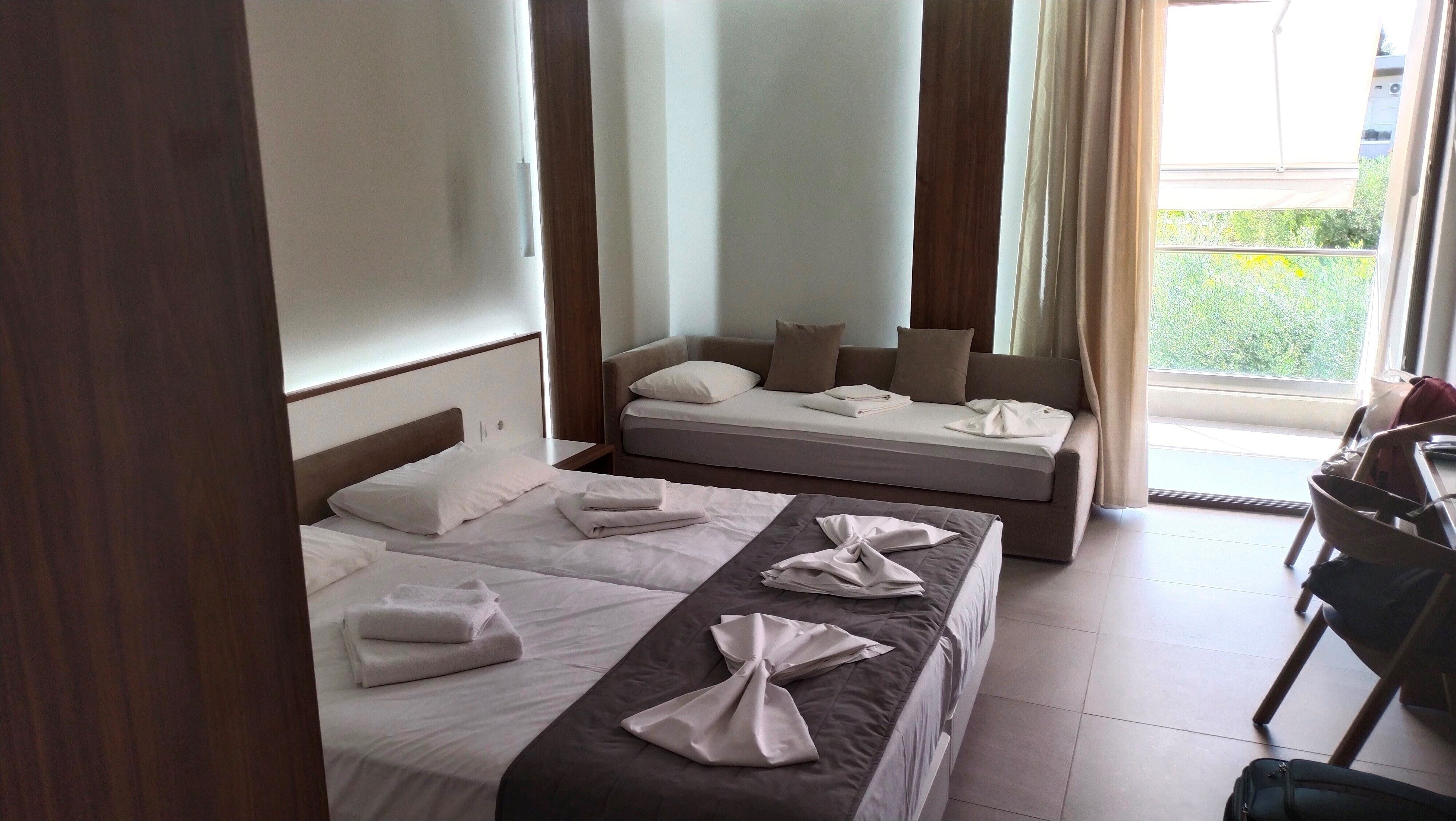 Дякую Анастасії за організацію відпочинку. Готель на першій лінії моря, номери великі, гарний вид на море. Ми приїхали о дванадцятій і нас (з України) зразу заселили, сказали Ваш номер готовий. Персонал ввічливий крім бармена біля ресепшина, може він був замучений в кінці сезону, все казав Енгіш, нема інших мов. Був міні бар безкоштовно. Харчування- ніхто голодний не був. Пляж вже був без шезлонгів, але думаю в сезон зі своїм полотенцем не пройде. Були Поляки, Французи, з Німеччини,Афроамериканці і рос. нажаль. Вода з крану дуже з хлоркою, але вони в номері ставили воду не газовану. Так наче все добре.
