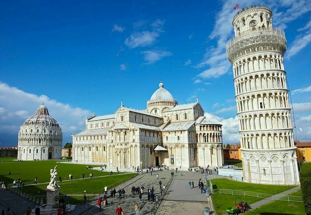 Когда-то Пиза оспаривала влияние Генуи и Венеции на морях. А теперь лишь покорно пожинает лавры одной комической архитектурной ошибки, благодаря которой город стал брендом, открыткой, предметом национального достояния. Но не стоит отдавать забавной башне все внимание. Ведь есть еще Площадь Чудес, где находится Пизанский собор, баптистерий и монументальное кладбище.