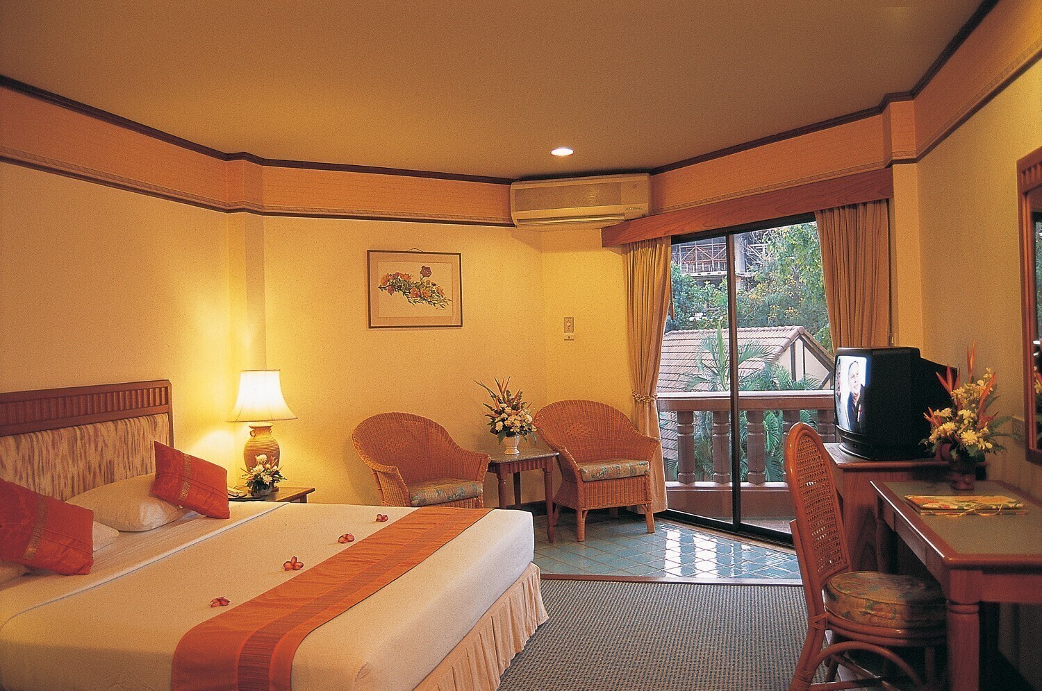 - КомментарииПлощадь 32 кв.м. Однокомнатный номер. Небольшой балкон. Дополнительное спальное место - раскладушка. Индивидуальный кондиционер. ТВ. Мини-бар (платно). Телефон (платно). Чайные/ кофейные принадлежности. Халаты и тапочки. Ванна и душ. Фен. Номера расположены примерно в 150 м от пляжа.
