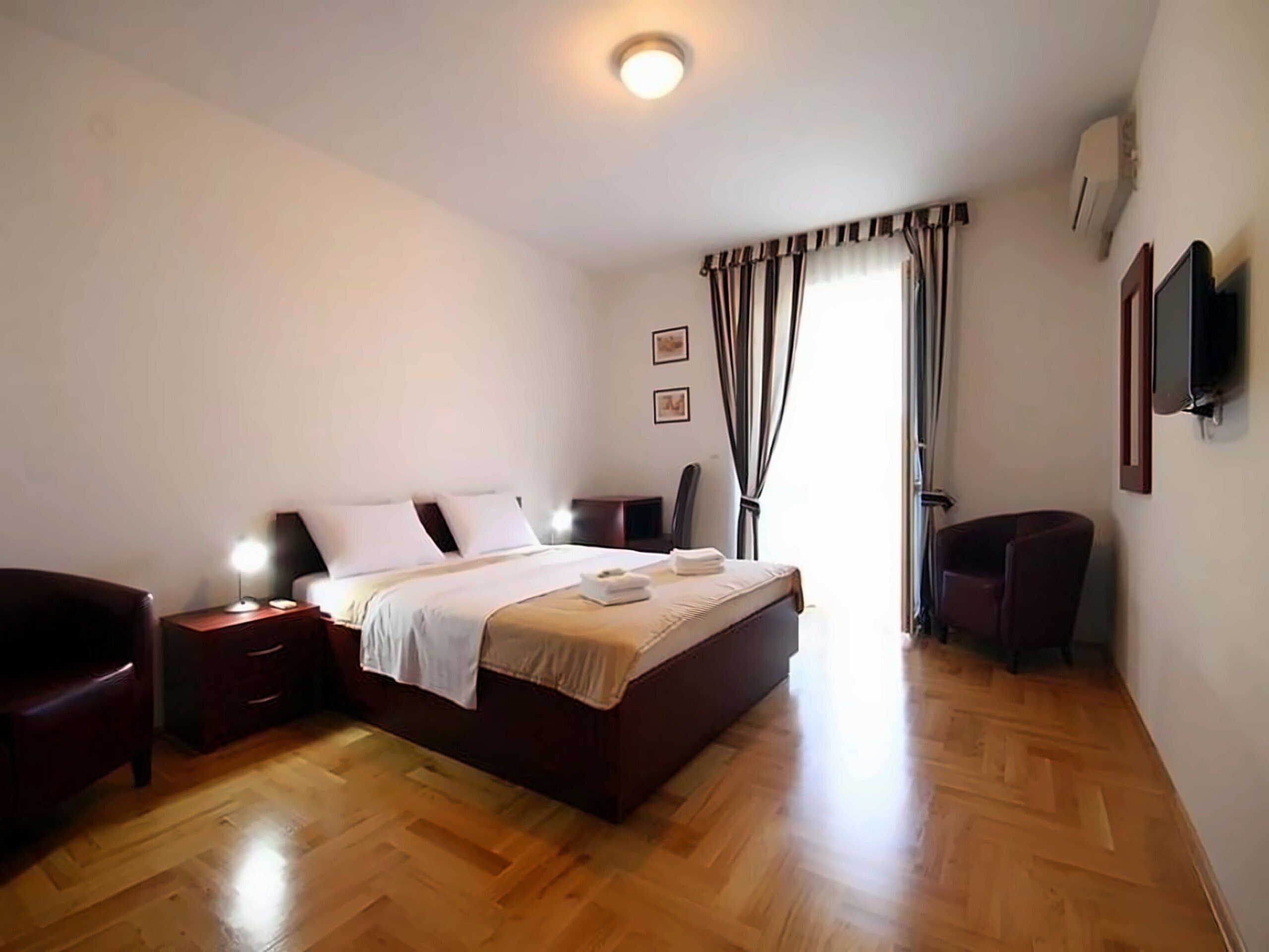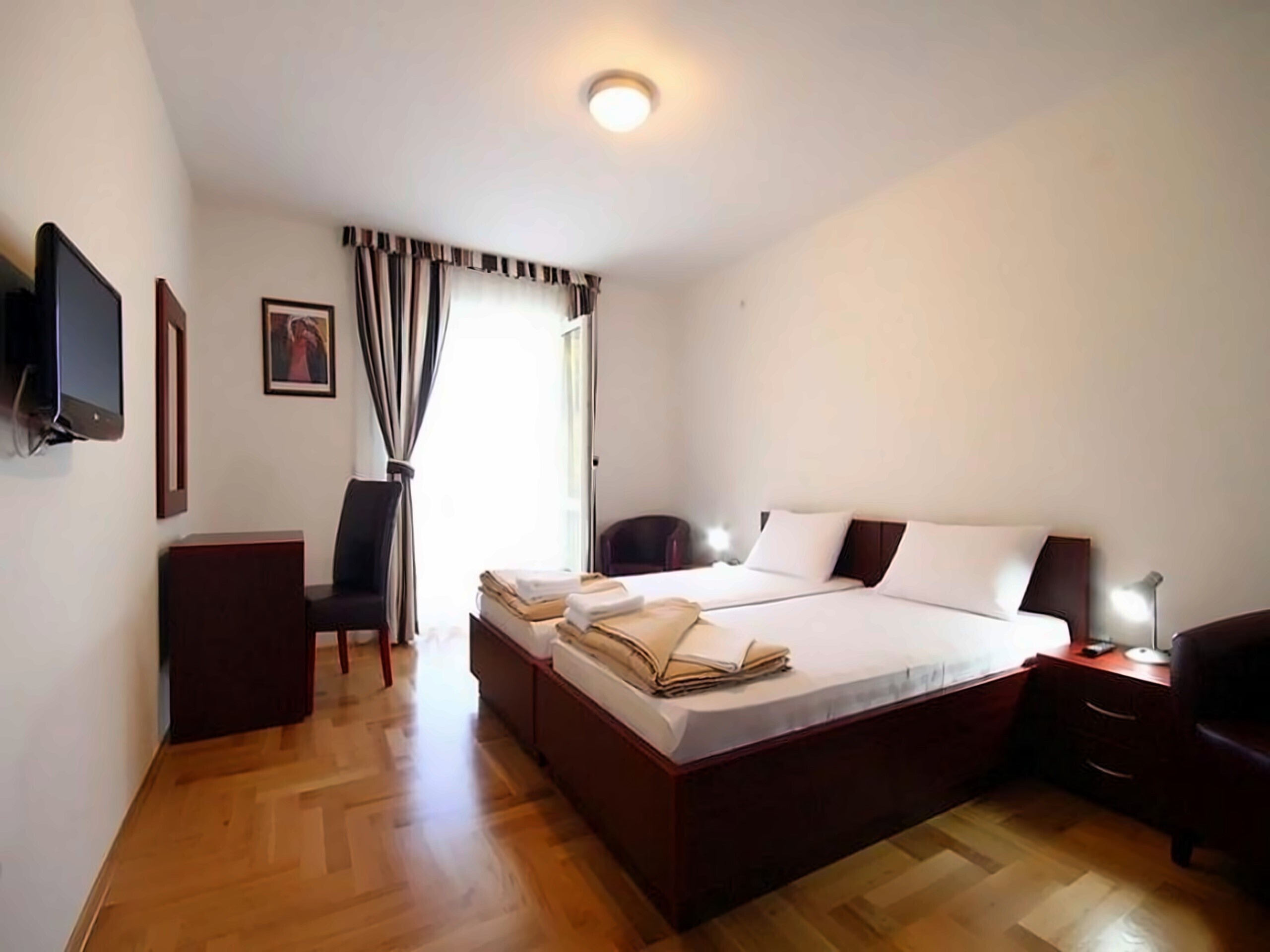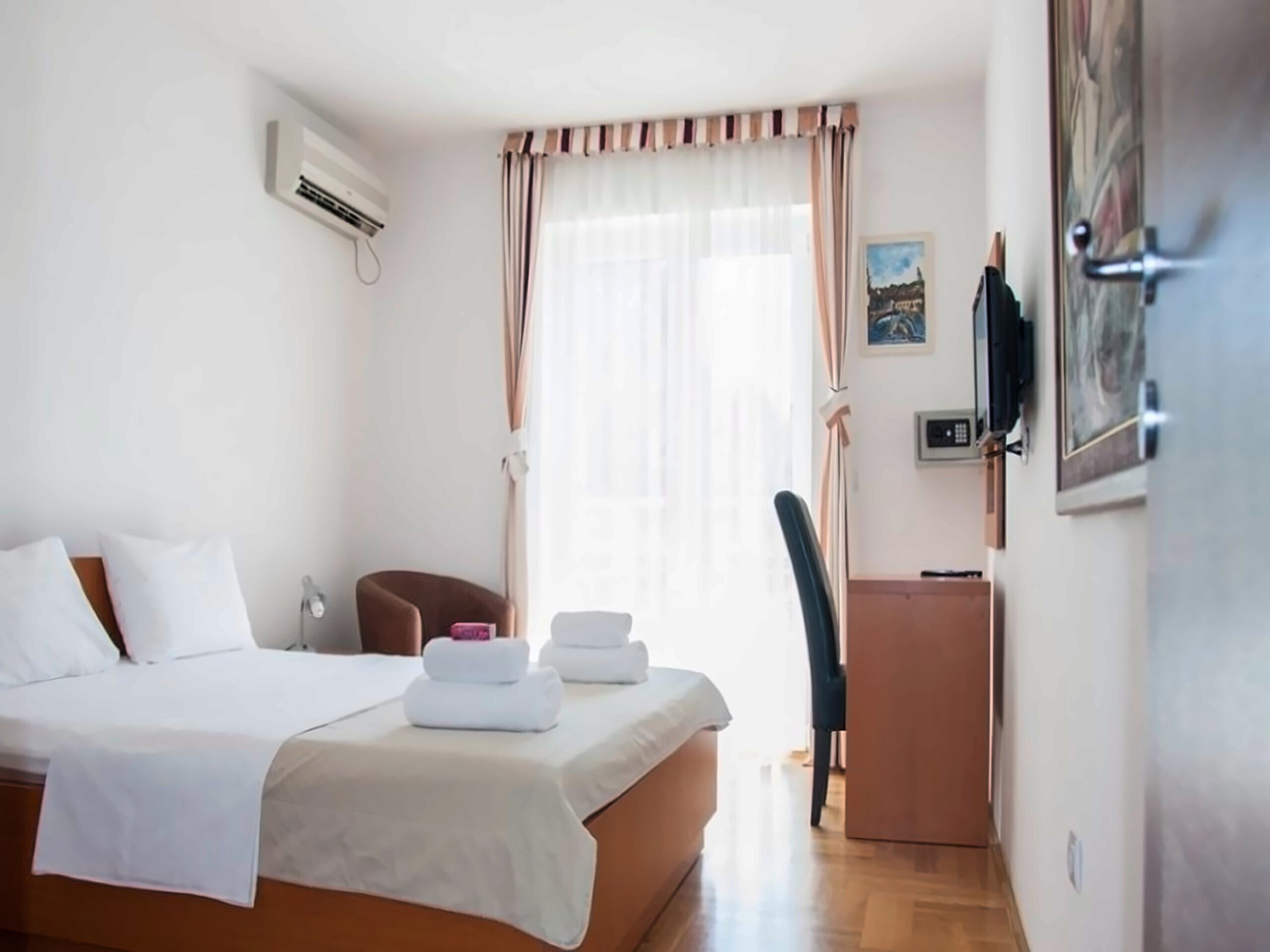 Невелика вілла на курорті Світи Стефан на 1й лінії моря, в 36 км від аеропорту. Номери укомплектовані терасами і кухонними куточками, також можна замовити пансіон в ресторані готелю.