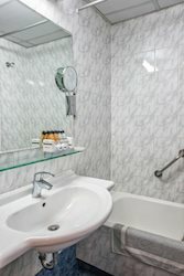 У ванній кімнаті надаються халати, безкоштовні туалетно-косметичні приналежності і фен.