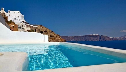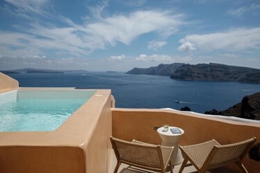 Vip Suites Hotel побудований на скелястому скелі мальовничому селі Ія, Санторіні, Кіклади, Греція.