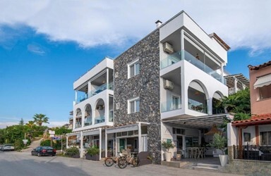 Готель Coral Blue Beach розташований поруч із затокою Торонайос. У готелі є власний пляж. Відремонтовані номери мають балкон із видом на море або сад і повністю обладнані кондиціонером, опаленням, супутниковим телебаченням, міні-баром, телефоном із прямим набором номера, холодильником, феном і сейфом. У готелі Coral Blue Beach діти можуть пограти на відкритому ігровому майданчику або на пляжі. У готелі є цілодобова стійка реєстрації, два відкриті басейни, один для дорослих і один для дітей, і безкоштовна парковка. Додаткові послуги включають безкоштовний Wi-Fi на всій території, обслуговування номерів, спа-послуги та тренажерний зал. У готелі є ресторан a'la carte "Thalassa" і бар "Ammos", які розташовані поруч із пляжем. Розташування готелю Coral Blue Beach є відправною точкою для вивчення всього півострова Халкідікі. Відстань від Салонік становить 65 км.