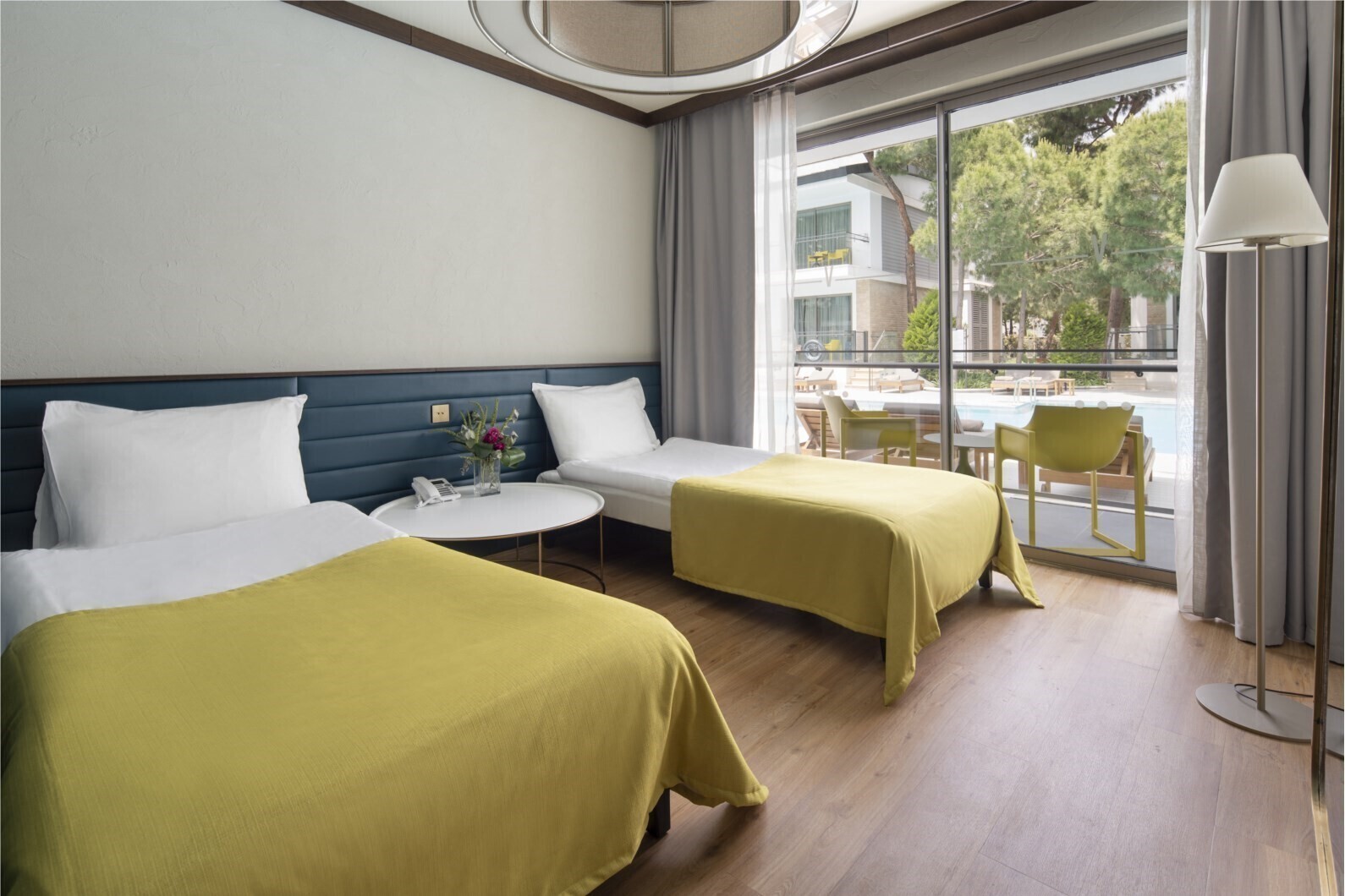 - Вид із номерана басейн та сад